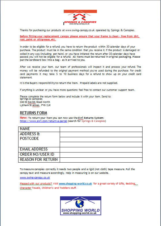 If you need to return a Product please download a Returns Form from one of the options below, save and print, and follow the instructions within the Form. Thank you.